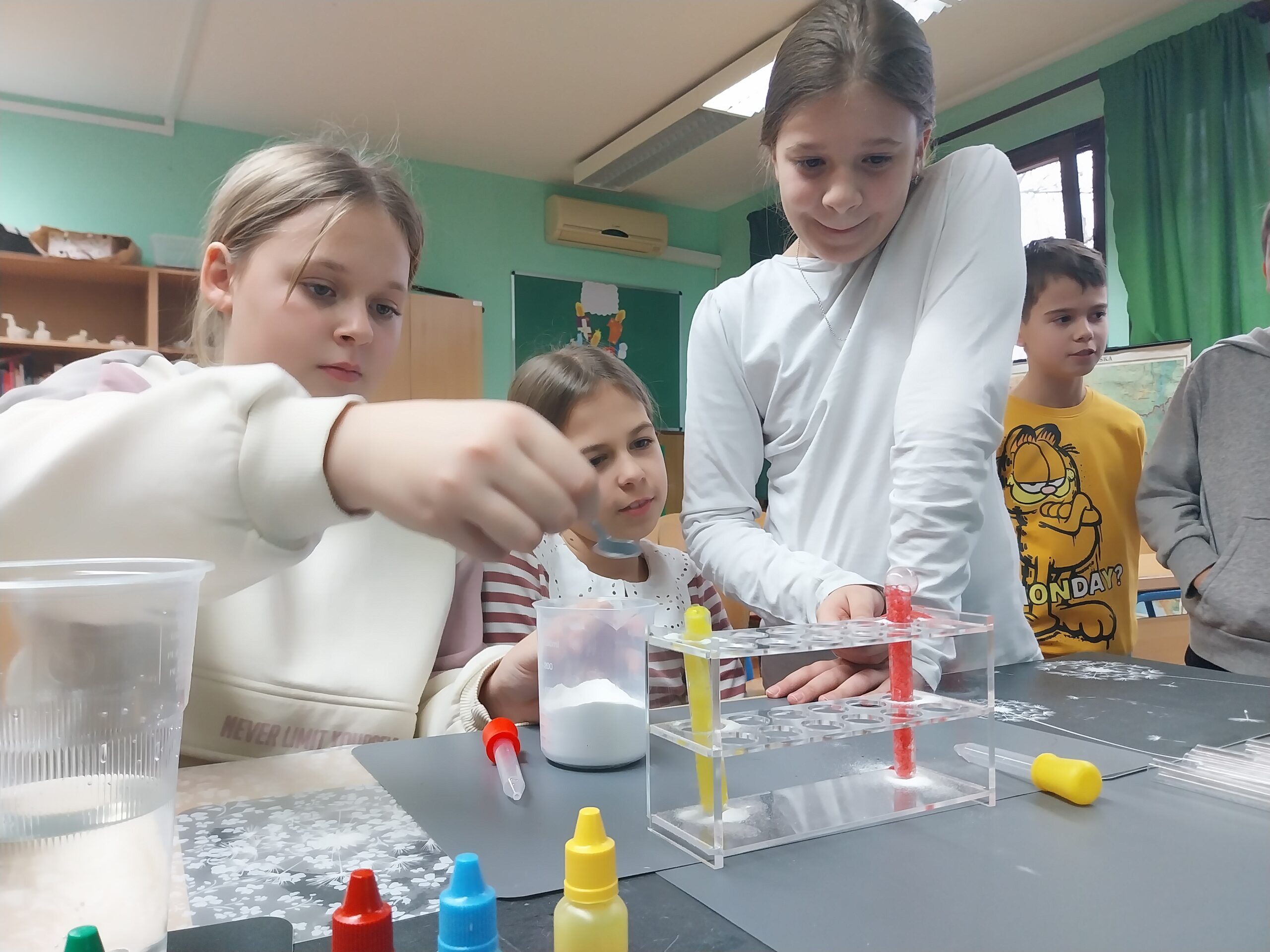 Tijekom radionica djeca su s velikim uzbuđenjem sudjelovala u svim aktivnostima te su kroz praktične pokuse na zabavan i interaktivan način upoznala svijet kemijskih reakcija. Svaki pokus izazvao je oduševljenje, znatiželju i mnoštvo pitanja, a djeca su aktivno sudjelovala u promatranju, predviđanju ishoda i zaključivanju o promjenama koje se događaju.
